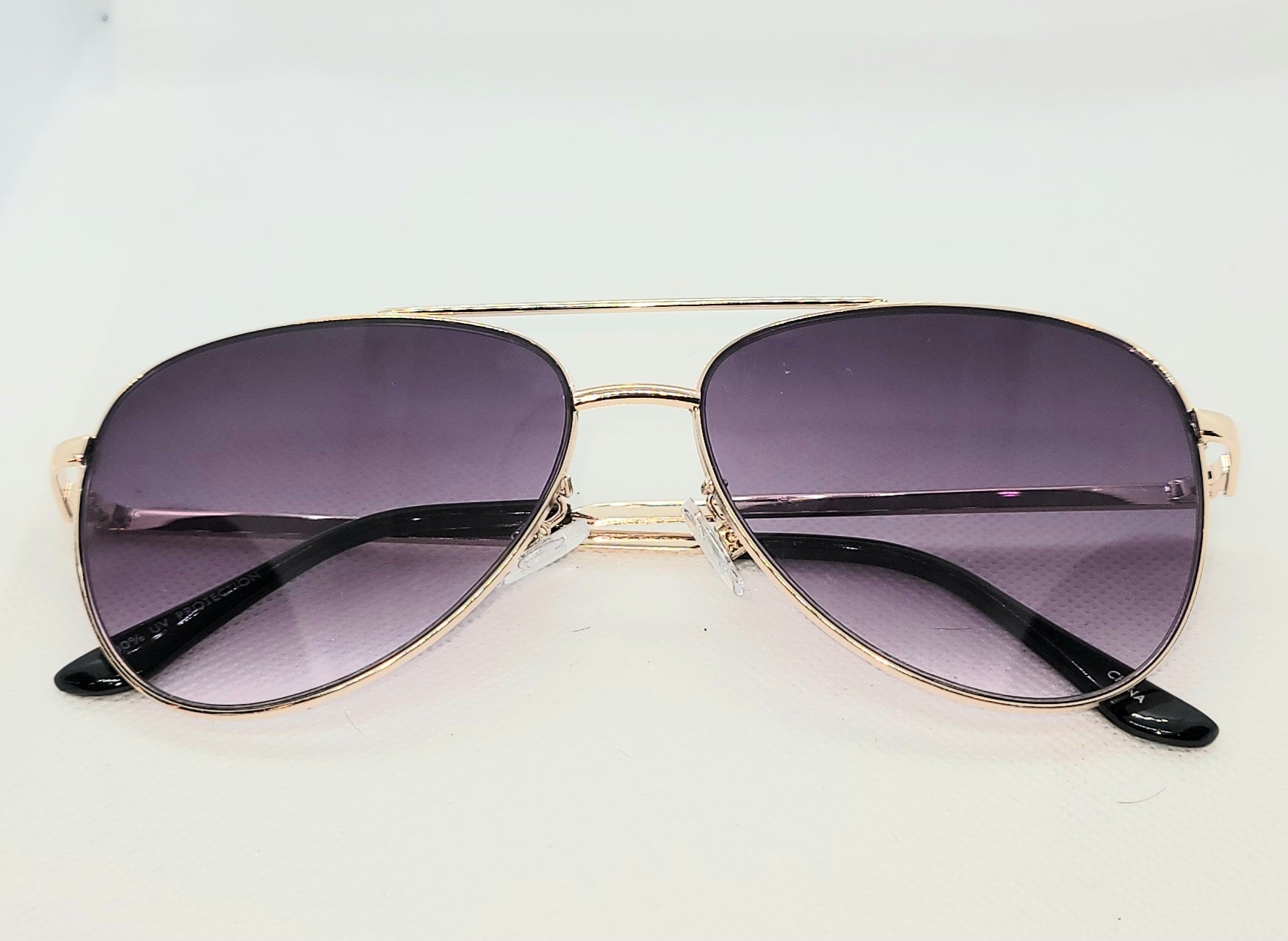 Gold frame with black lens shades. Thin and light weight, Aviator shape - Unisex